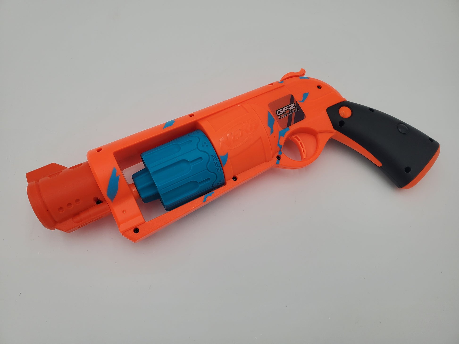 Modified Nerf Fortnite 6-SH via gavinfuzzycustoms 9-Shot Snub Kit and upgraded spring.